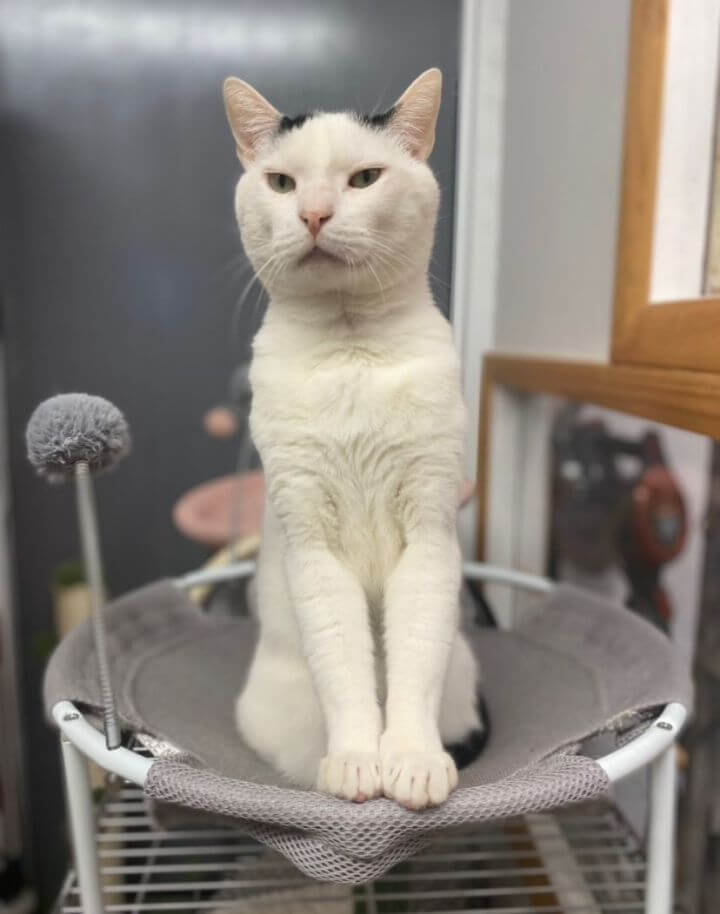 Adam is such a handsome 4-year-old boy. He is the best of both worlds. Adam enjoys playtime with string toys and really just loves human affection. He is loving, sweet and an easygoing kitty. He can be found curled up on your lap and has this cute way of shaking his tail when he’s happy.