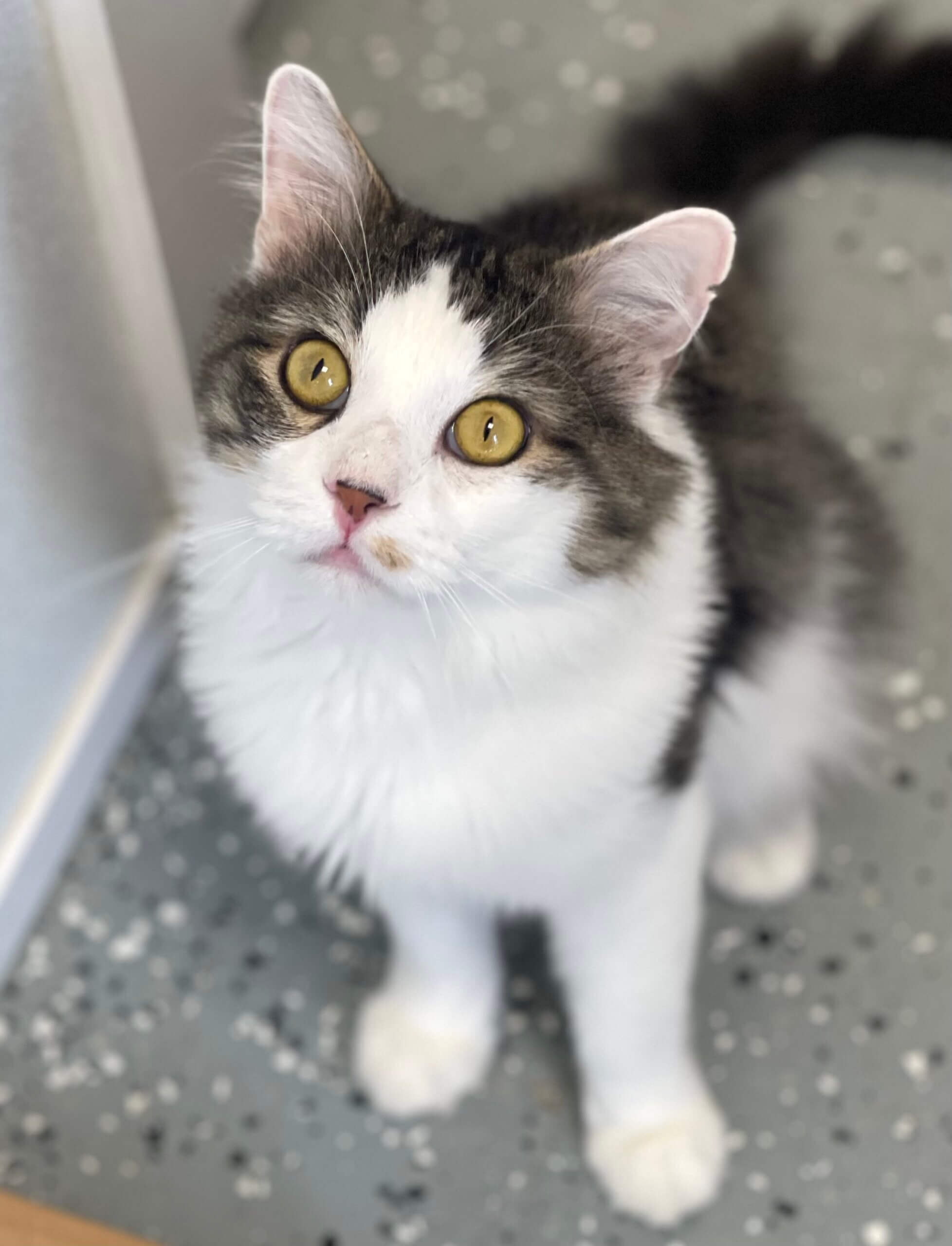 Talk about a mellow, quiet and sweet kitten, well that’s Pepper! This 8-month-old gal is super friendly and enjoys attention from people. Pepper likes to play with her littermates and is a curious, easy going kitten looking for her forever home.