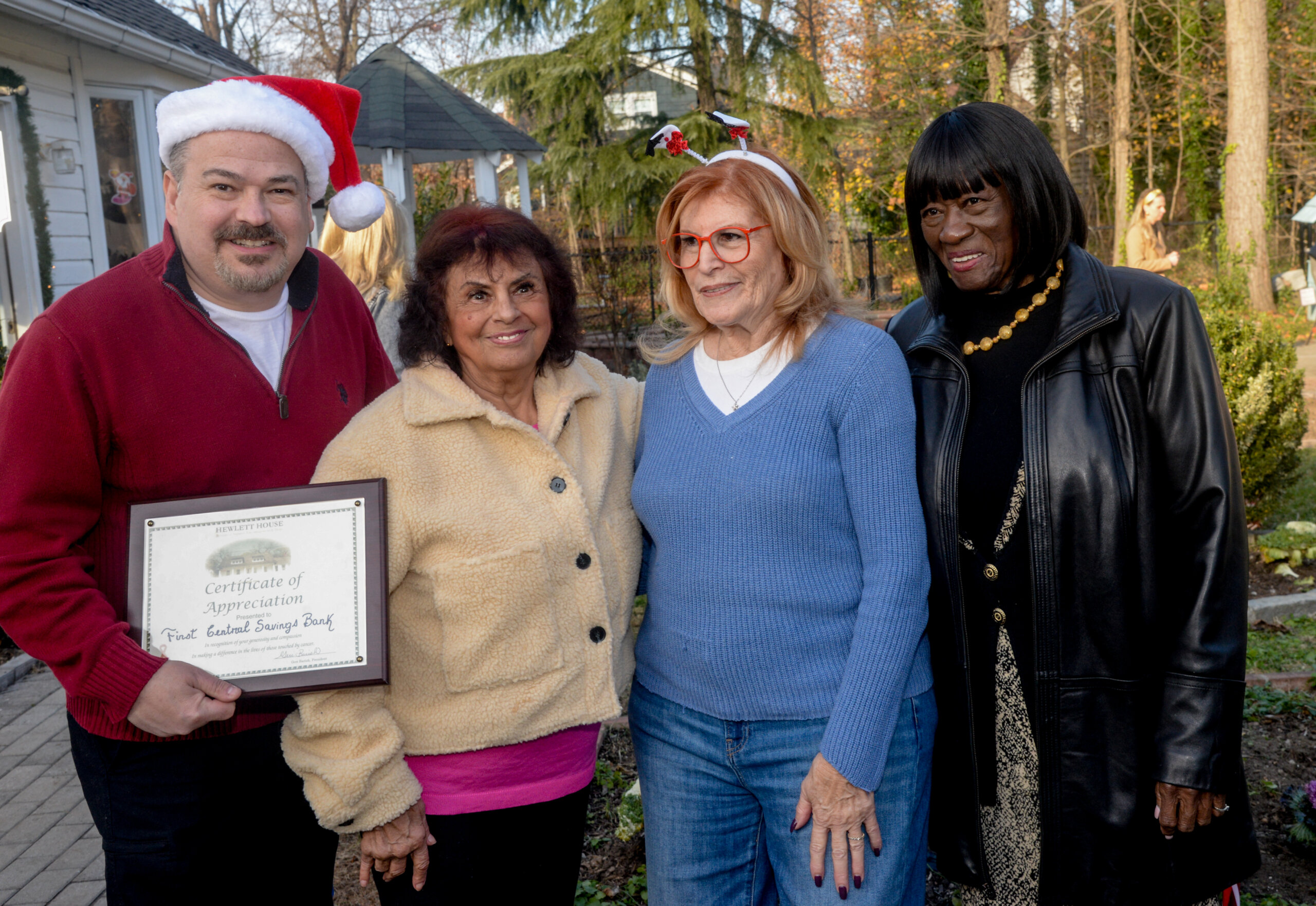 From left: Victoria Schneps-Yunis, Michael Serao of First Central Savings Bank, Geri Barish executive director of Hewlett House, and Deputy Town of Hempstead Supervisor Dorothy Goosby.