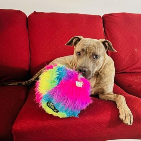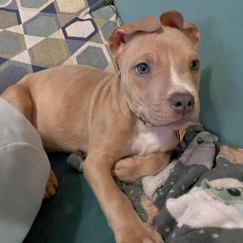 Blossom is a 5-month-old rescue who loves lots of attention and affection. Once she knows you are just there to love her, she will lay on her side and ask for belly rubs! She is so playful and does well with others.