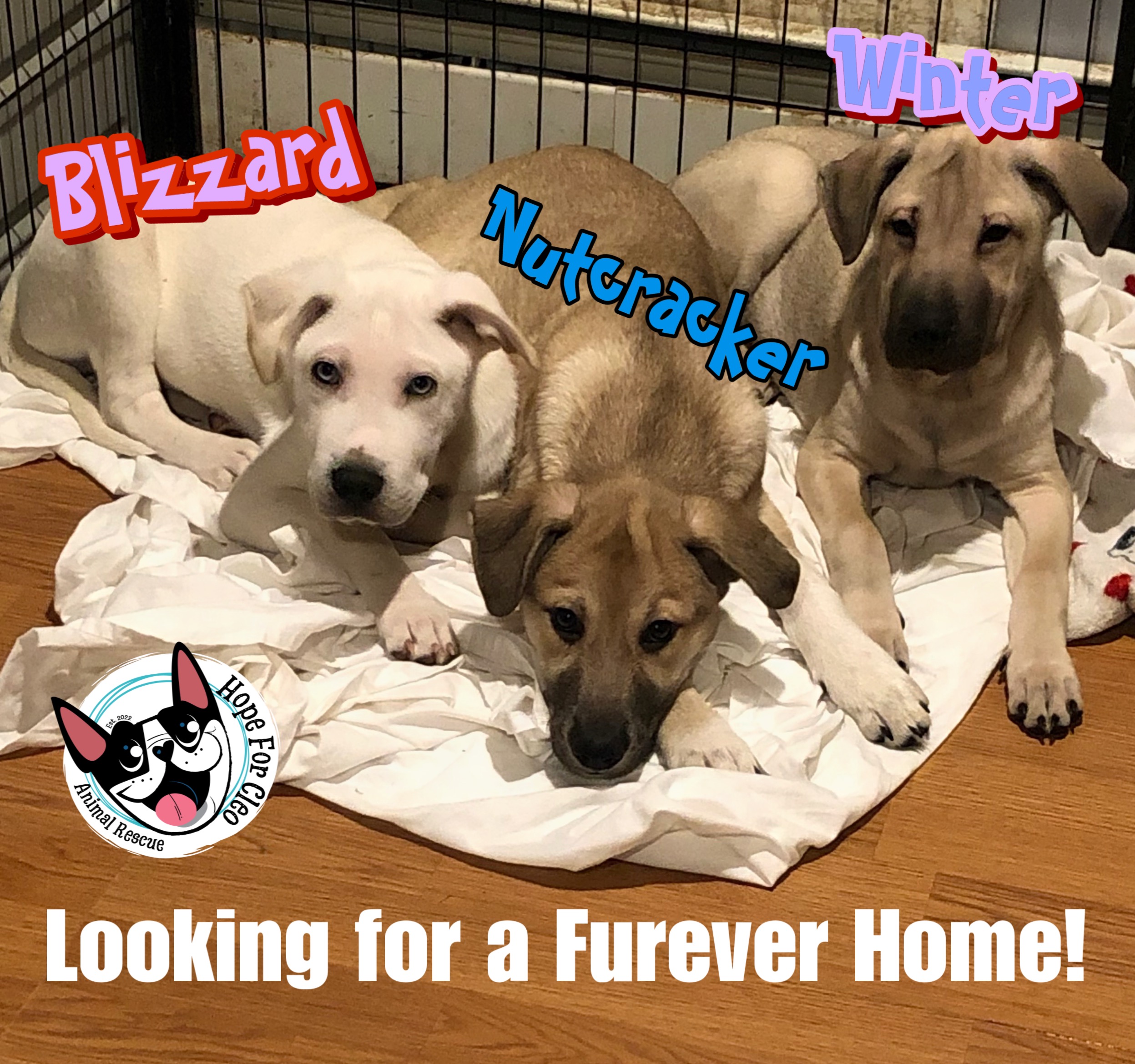 Meet three adorable rescue puppies; Nutcracker, Winter, and Blizzard, all with an incredible story to share. It’s hard to imagine these sweethearts were left in a garbage to die. Found starving, but just in time, they were given a second chance at a happy and healthy life by Hope for Cleo Animal Rescue. Despite their rough start, they are full of energy and love to play and snuggle. They are great with children and are eager to receive all the love in the world. They all get along fabulously with other dogs, so if you already have a furry friend at home, they would make the perfect playmate!