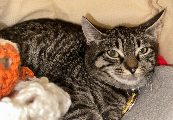 Someone was feeding Oliver when they noticed a large wound on his inner leg. After bringing him to the vet, they needed him to stay indoors while he healed and the wound needed to be cleaned daily. The feeder couldn’t commit, so Lend-a-Paw jumped in. Even though Oliver was in pain, he was the sweetest boy and allowed all handling. He is very mellow and loves to lay in his bed and be comfy all day! He gets along great with the other cats, and is about 2-years-young.