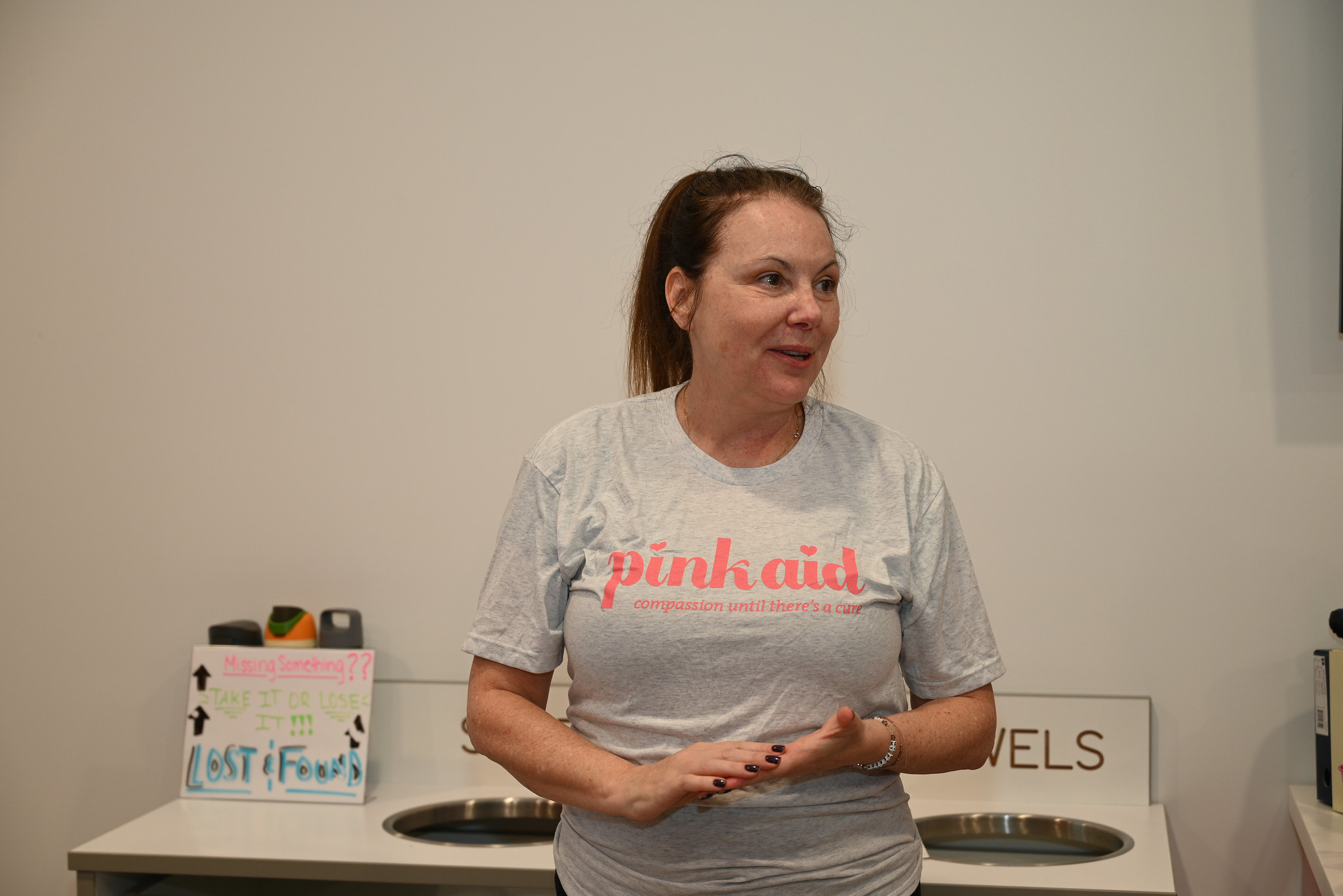 This was PinkAid committee member Beth Taylor’s first time at CycleBar Huntington and she said that this is a great cause to help people who may not have the money to pay their bills after being diagnosed. “I thought this was a great way for people to get together for PinkAid and get some energy out, and maybe shed some tears because this is a very emotional community,” says Taylor. She adds that it’s wonderful to be able to raise funds for the people who can’t exercise right now.