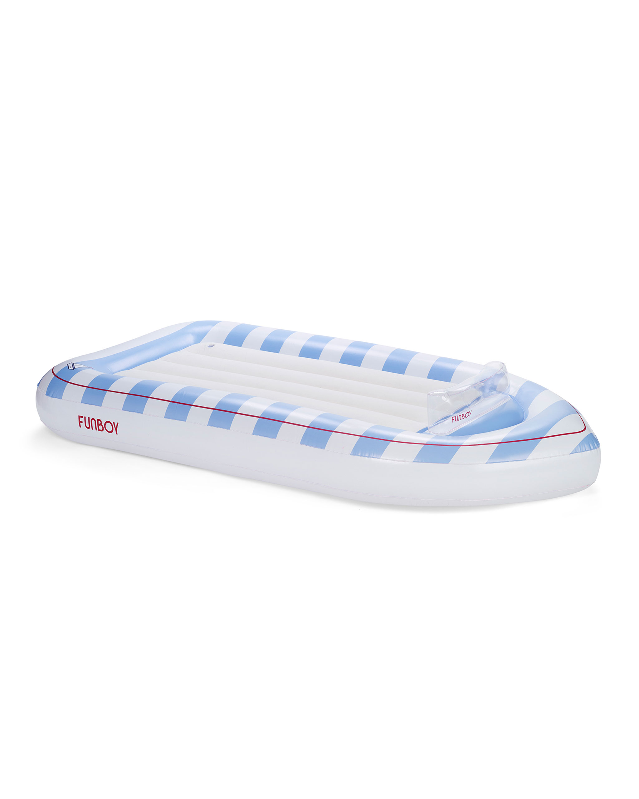 - FUNBOY turned their iconic pool float designs into kids’ sleepover beds. These pastel colored and dynamic designed sleepover air mattresses help kids feel more at home when on the go. Kids will love that these beds easily make bedtime more fun since they can catch their zzzs in a convertible, castle or classic speed boat. Parents will love the soft, flocked material for sleeping and the carrying bag for easy storage and travel, making it a spring break essential.