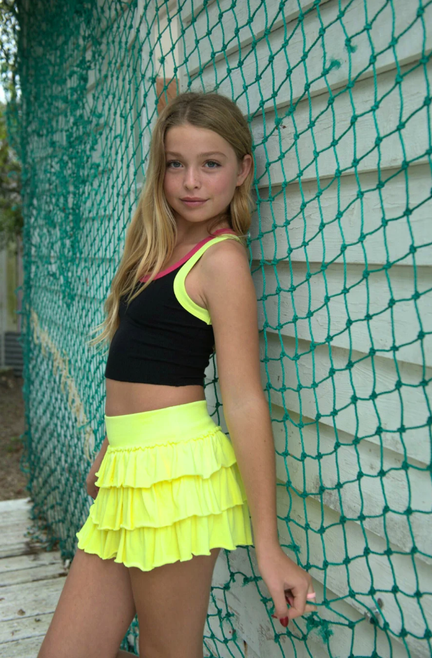 - Limeapple swimsuits are fashion forward for little jetsetters. Kids will be head over heels for the chic design and comfy, brand new crinkle fabric suits for girls. Parents will love that all the sustainable swimsuits have UPF 50+ protection which block out 97% of the sun’s harmful rays. We love them all but fan favorites are the Alessia cropped tankini, a two toned bikini set in a sunny yellow and hot pink, the Aasiya swimwear bikini set with its custom fit and detailed embroidery, and the Rylee asymmetrical one-piece swimsuit with its two-toned design and trendy side cutout.