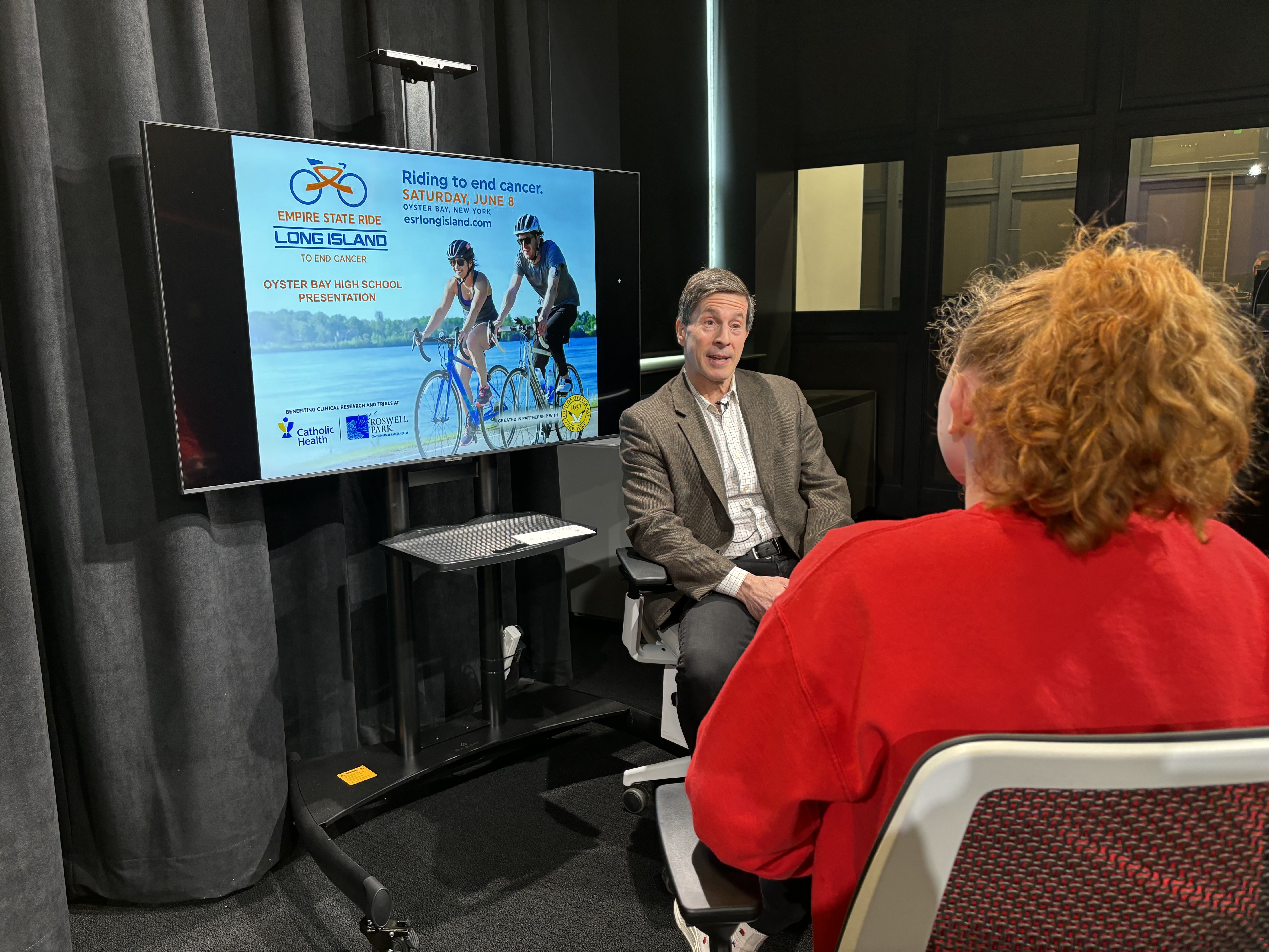 “In the first three years, we’ve raised over $300,000 for cancer research research, which is really exciting,” Steve Mars, co-chair of ESRLI, told interviewing student Grace Curry, a senior. “But then in year three, we met with the Oyster Bay-East Norwich Chamber of Commerce, and decided to bring the ride out onto the street and actually do it in downtown Oyster Bay so that the entire community can participate.”