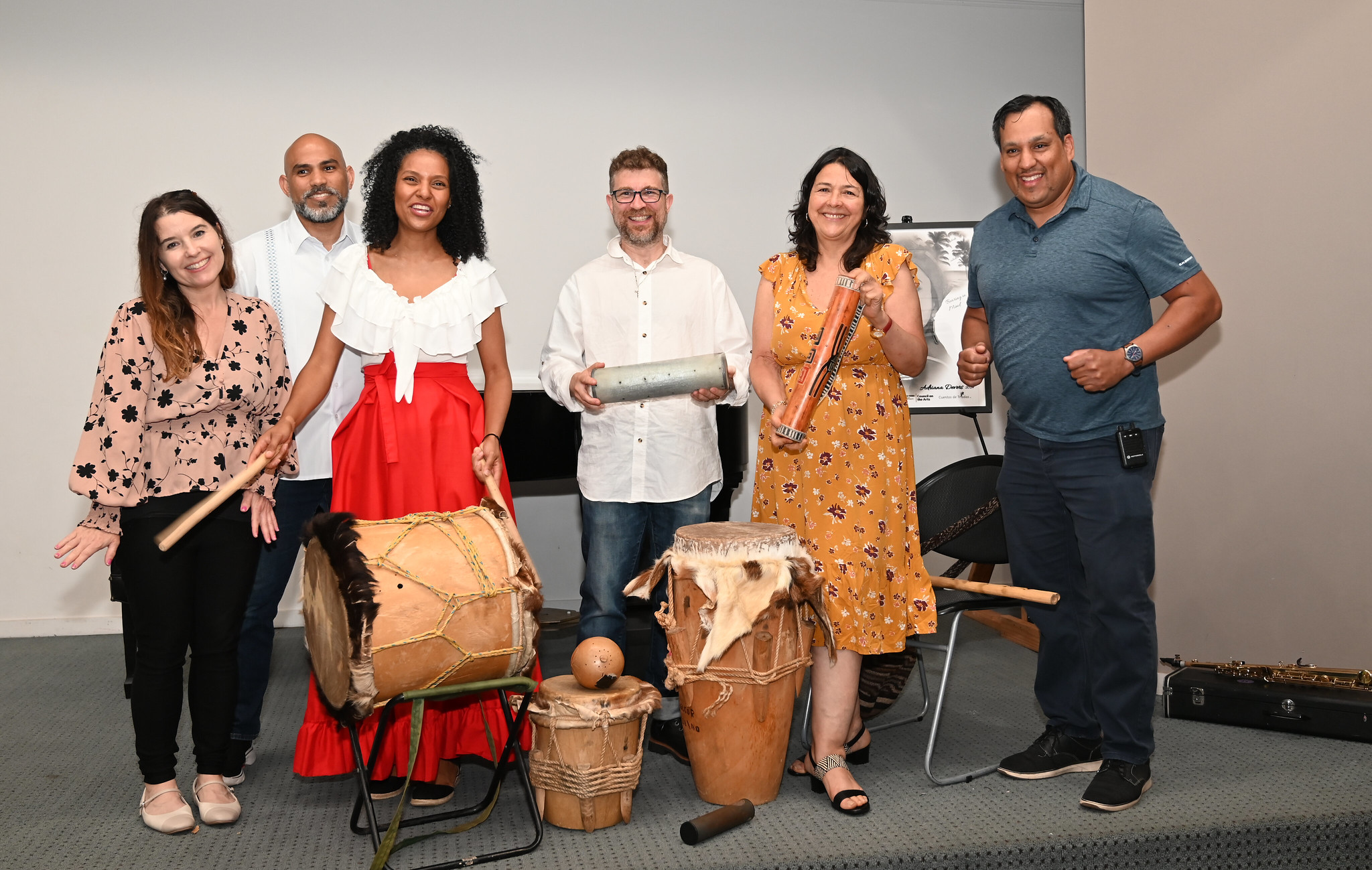 Devers weaved together poetry and vignettes that resonated with the hearts of attendees in an enriching bilingual program full of rhythm and cultural pride. The special guest, musician Juan Uribe, added a layer of cultural richness by drumming to the poems and imparting knowledge about the instruments of our African ancestry. His presence elevated the experience and brought a deeper understanding of the roots of the artistry showcased. The real magic of the evening was in the hands of the children. Jazline Rodriguez, with her heartfelt introduction, set the tone for the program. Benjamin Uribe’s drumming alongside his father Juan exemplified a beautiful blend of tradition and family values. And Jeremiah Rodriguez, with his medley of musical hits on the piano, brought the night to a close, leaving the audience in awe of the young talent displayed.