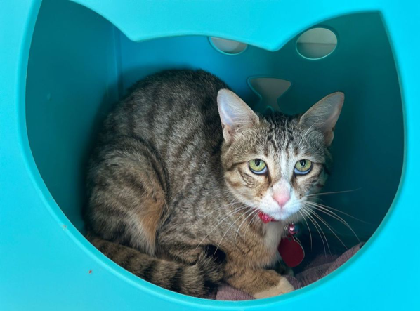 Upon making her acquaintance, Mashed Potatoes will melt your heart, like a dab of butter on a warm side dish. She has some minor hair loss, likely due to a flea allergy, which the team at the shelter has been successful in resolving. Her endearing personality can capture anyone’s heart, especially when gazing up at you with those enchanting, gemstone eyes, commanding a gentle petting and some TLC. Mash Potatoes’ charming and delightful nature would enrich the life of any animal loving human and would do well in most homes including those with kids, other cats and possibly dogs.