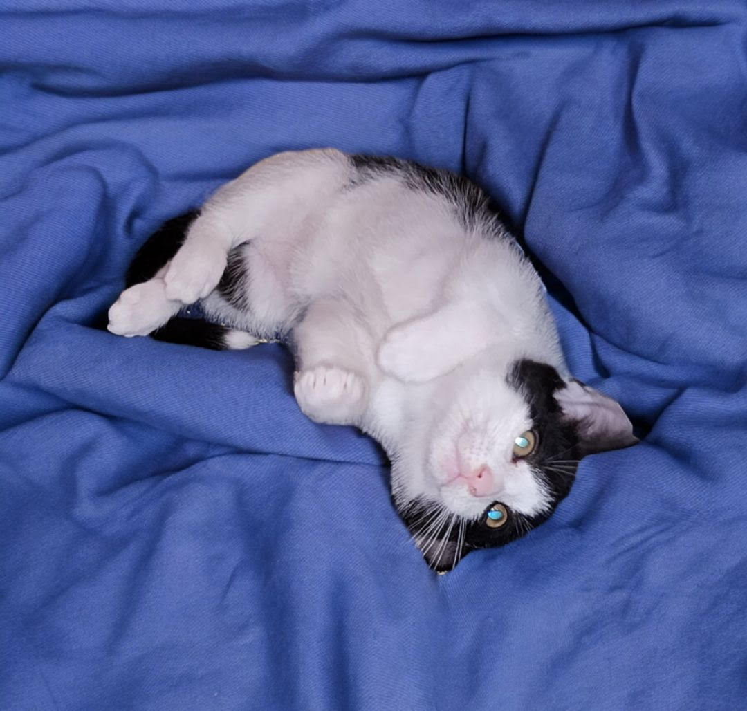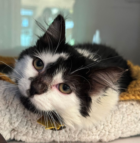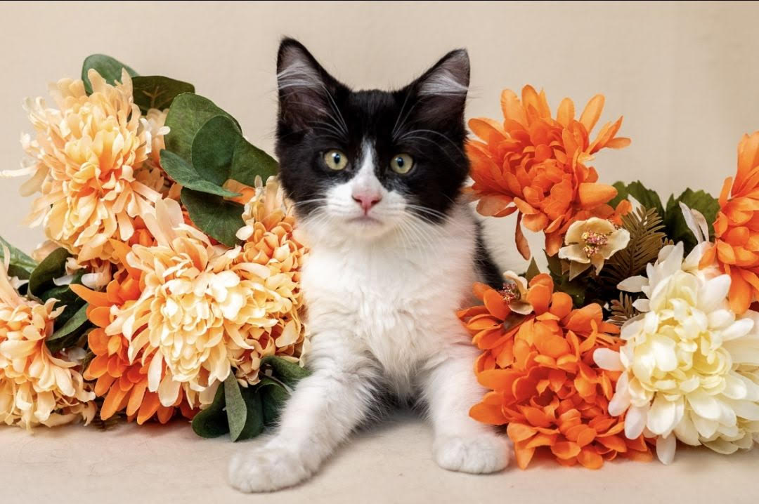 Grumpy has the cutest facial expressions. His black and white coat really shows off the white fluff in his ears. This endearing boy is mellow and can play independently or with other cats. He sometimes is shy, but that’s what makes him special. You will find him in his foster home joining in on the fun with his siblings.