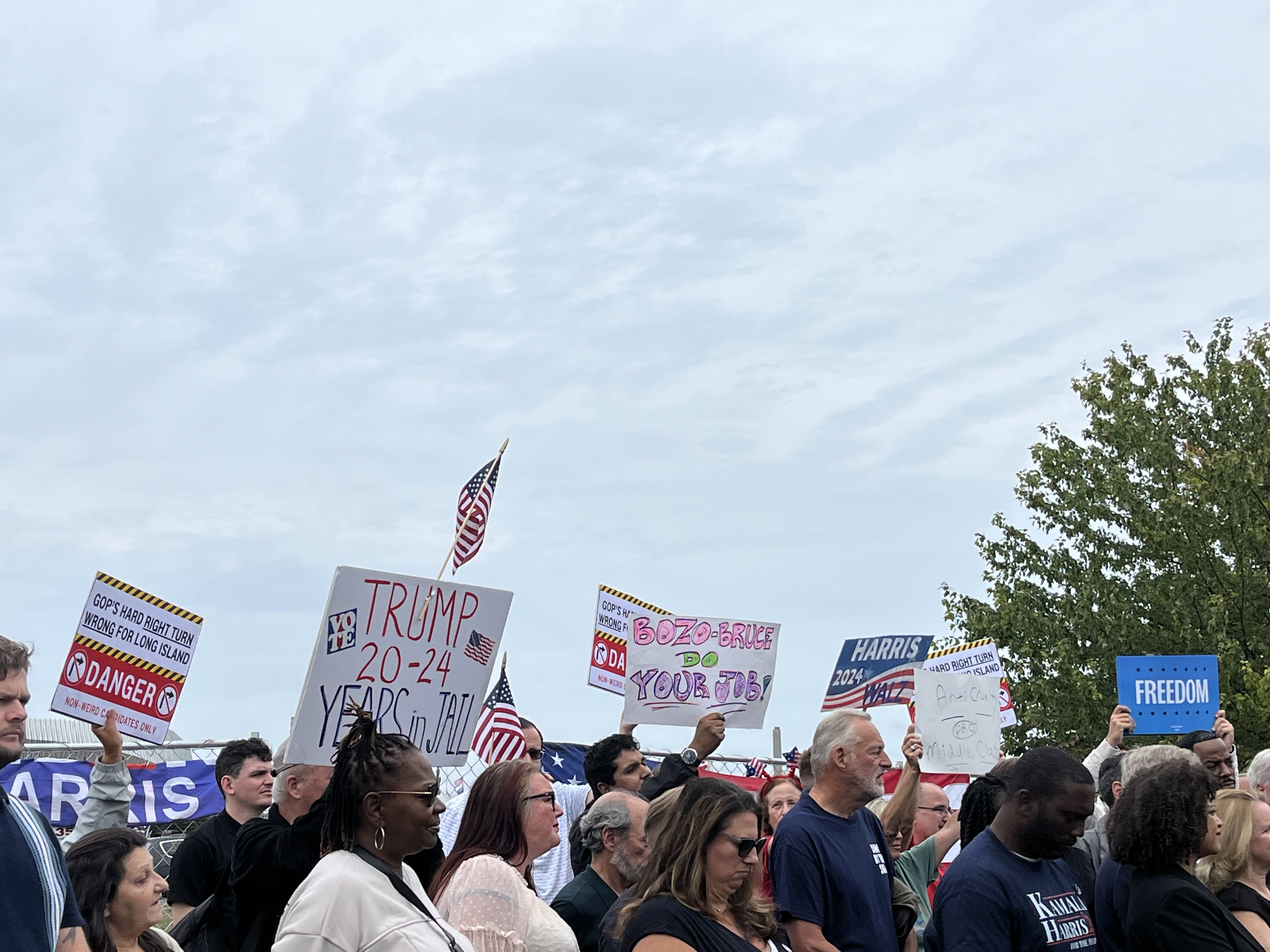 The former president’s policies hurt Long Island, said those gathered at the Trump rally. Trump took away the “greatest tax deduction” that Long Island has ever seen, Zimmerman said.
