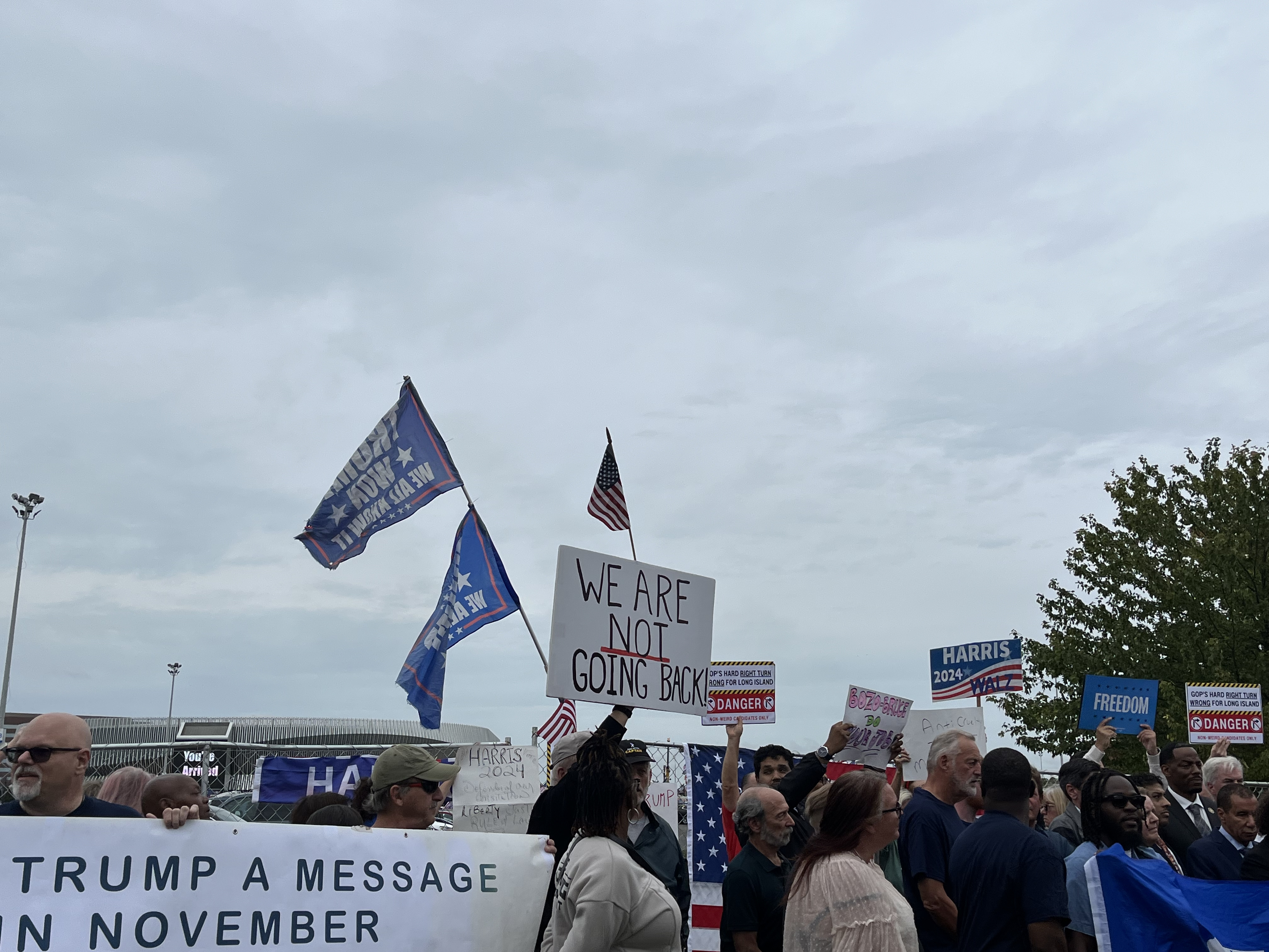 Those at the Trump protest are concerned about what they perceive a red shift on Long Island. “GOP’s hard right turn is wrong for Long Island,” read signs.