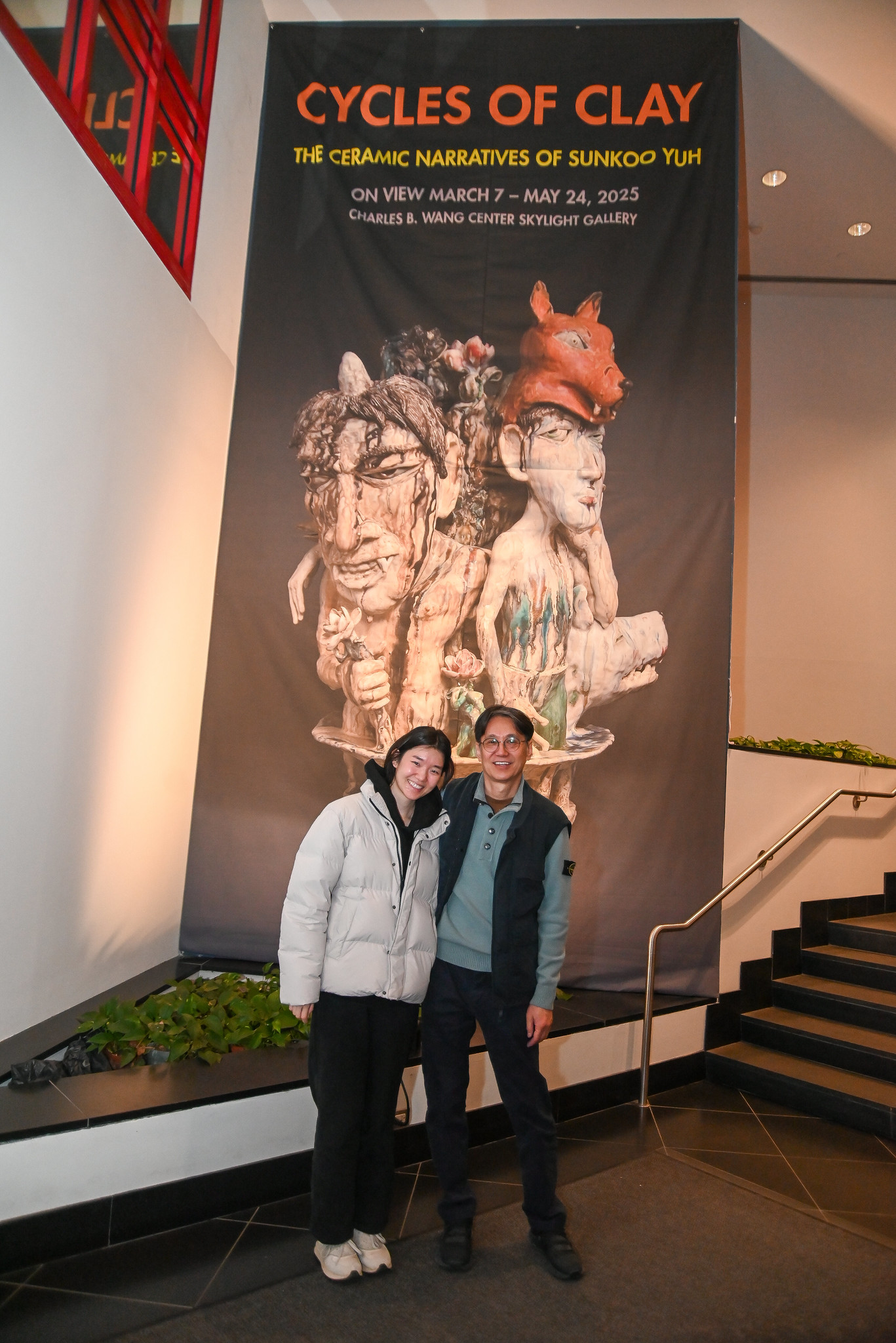 The Charles B. Wang Center at SUNY Stony Brook unveiled its latest exhibition, “Cycles of Clay: The Ceramic Narratives of Sunkoo Yuh” on March 7, transforming the Skylight Gallery into a vibrant showcase of ceramic artistry. The opening drew art enthusiasts, faculty, and curious locals alike, kicking off with an artist talk by Sunkoo Yuh at 4 p.m., followed by a lively reception from 5 to 7 p.m.
