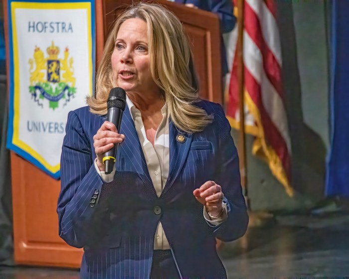 She also addressed cuts to Social Security and Medicaid, facing her constituents, referencing a recent town hall she held with fellow U.S. Rep. Tom Suozzi that touched on these cuts, adding that both were hurting her district.