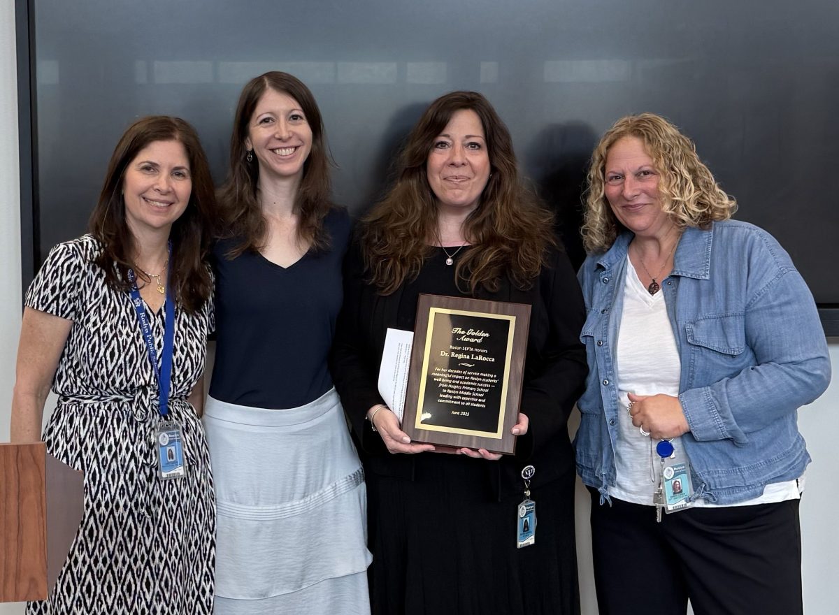 Heights Psychologist Jillian Brass presented Regina LaRocca with the “Golden Award” for her dedicated service to the students and community of the Roslyn School District. Beginning her career in September 1998 at Heights Primary School, LaRocca has been a steadfast advocate for children’s well-being and academic success.